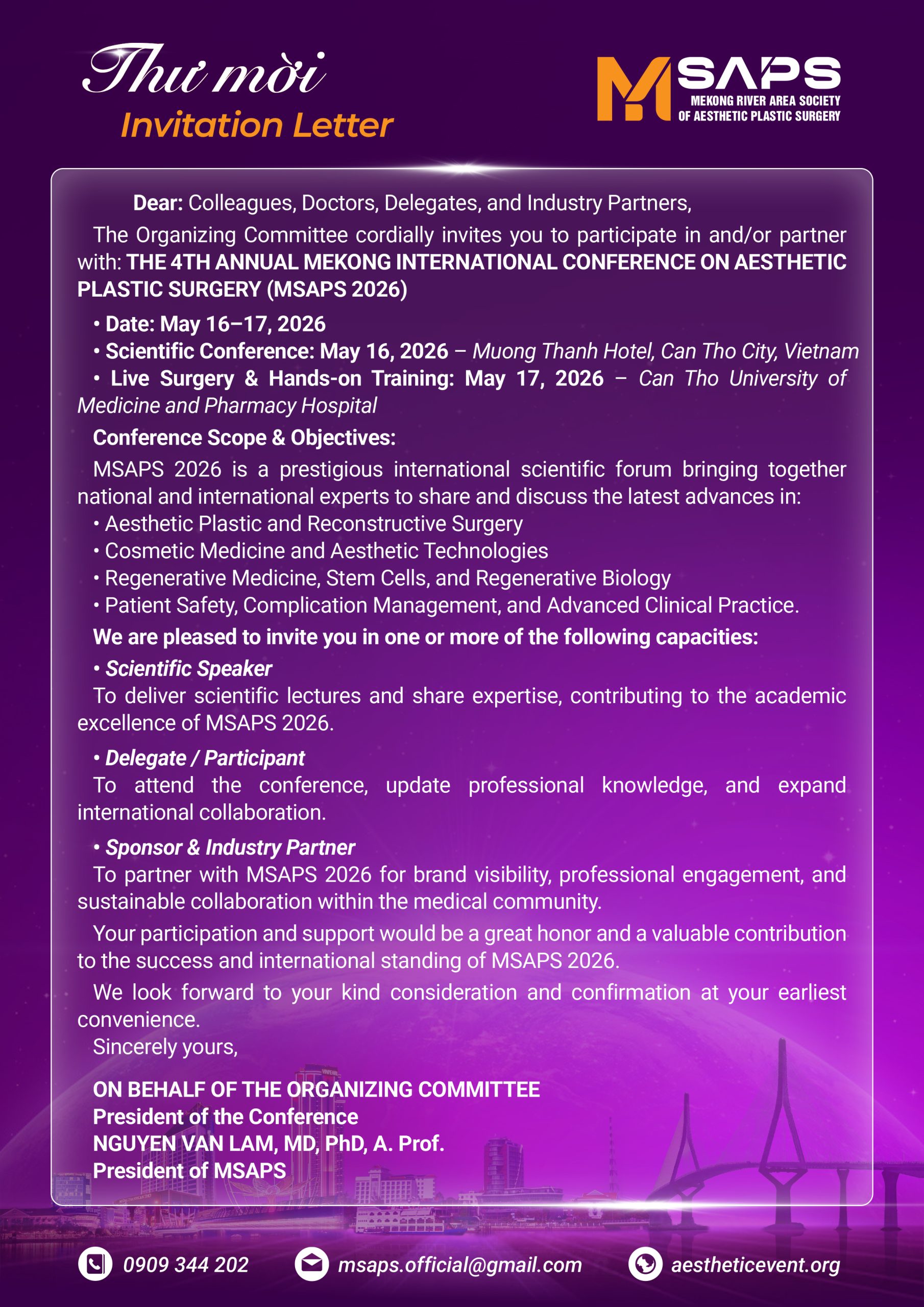 THE 4TH ANNUAL MEKONG INTERNATIONAL CONFERENCE ON AESTHETIC PLASTIC SURGERY (MSAPS IV)